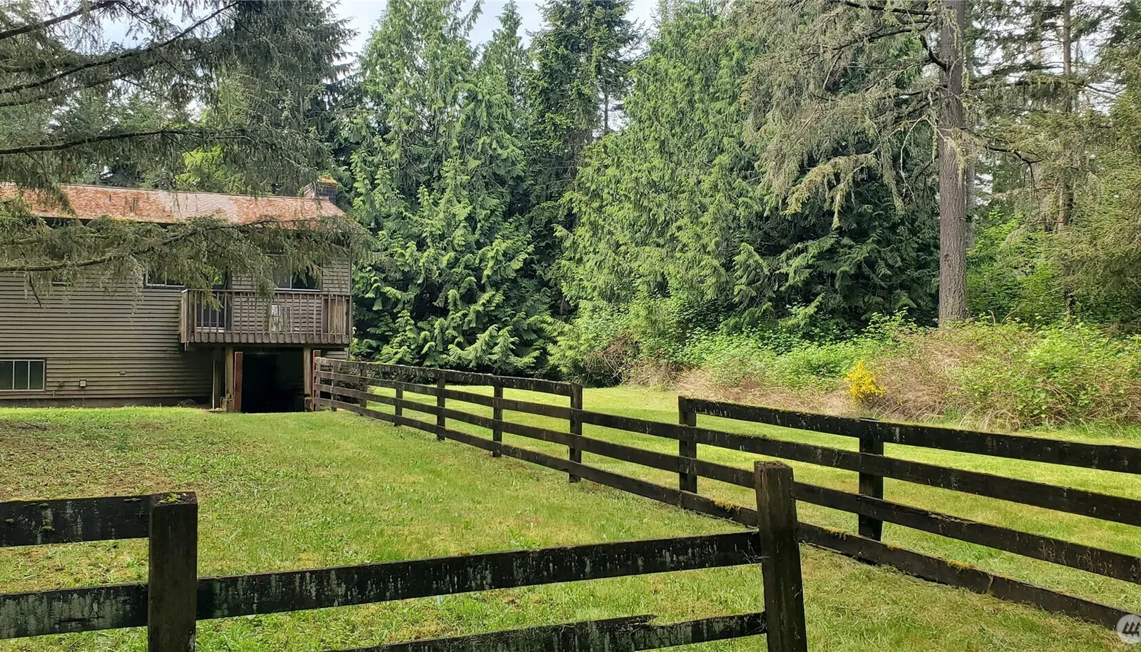 Gated Entrance to 10 acres of level dry land with massive Douglas Fir Trees zoned RA-10SO. The property has a main house that is one story with...